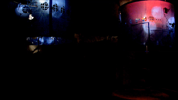 2017. 240 cm x 200 cm x 310 cm. Contre plaqué, écrans led, tissus, matelas, moteurs, rouages.