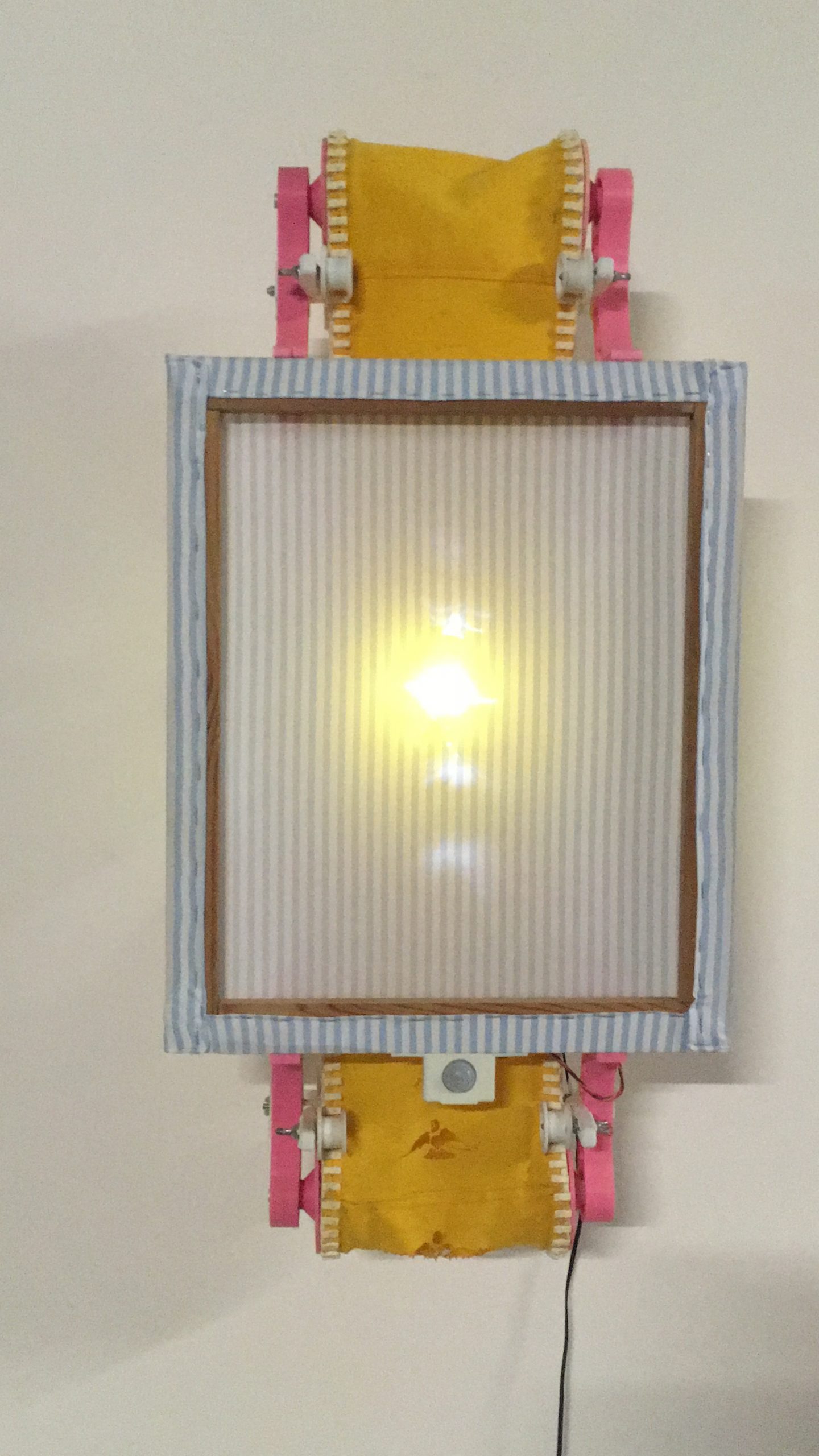 Bois , moteur, lumieres ,arduino, 2014. 200X300X60 cm