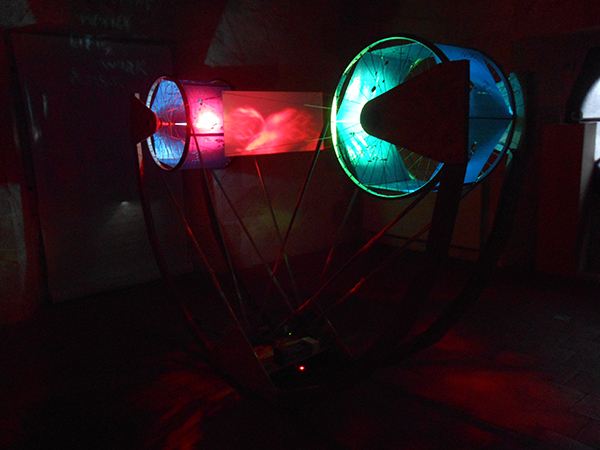 Les mécanismes, s’actionnent grâce à des capteurs. Les machines se présentent à nous comme des entités vivante et vibrantes en interagissant avec l’espace environnant et les mouvements, bruits, lumière qu’elle peuvent générer.
