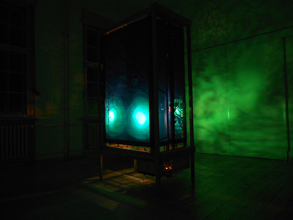 2014- bois, électronique, lumières ; 200X120X60 cm